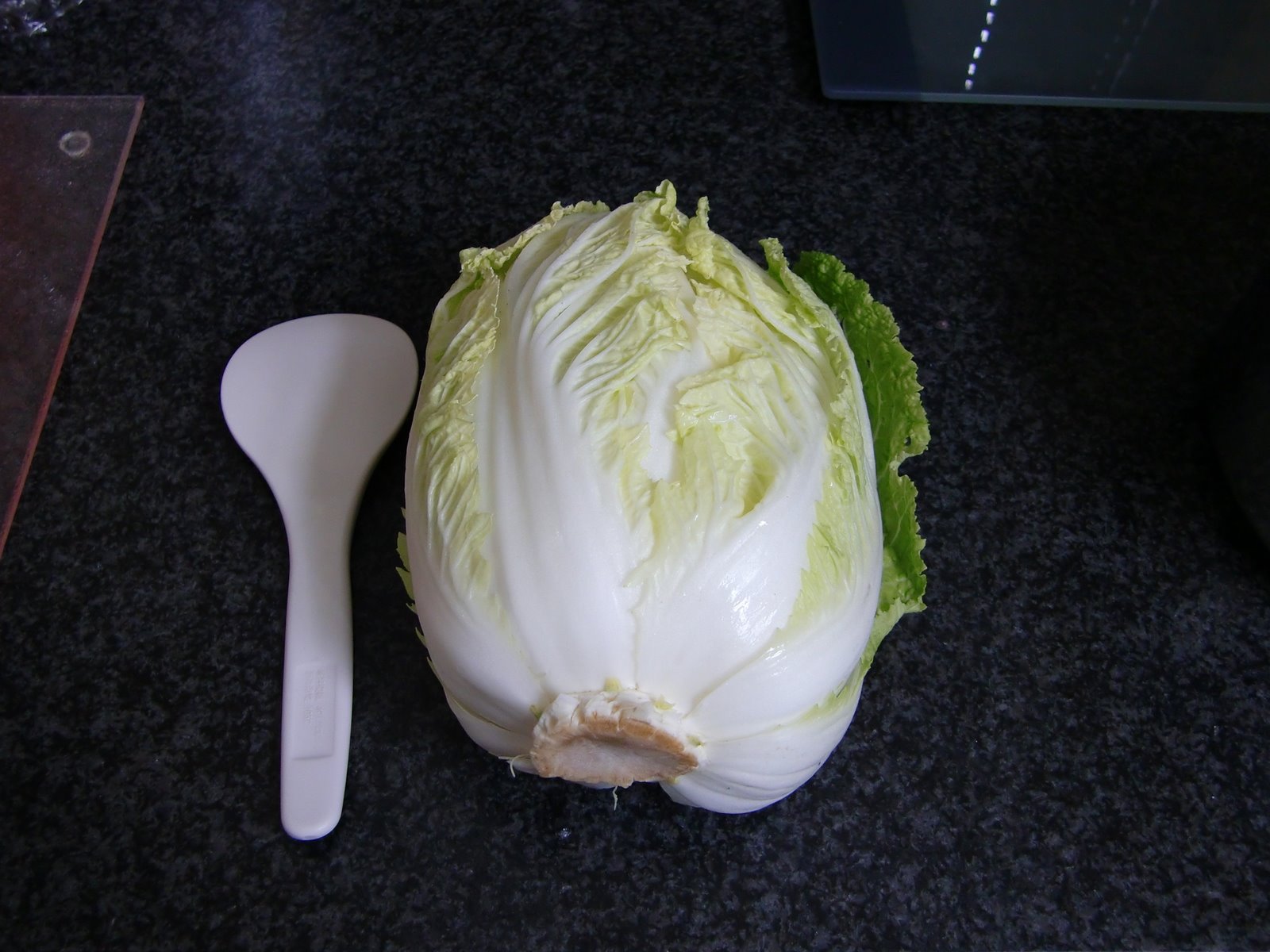 白菜の小ささとか「たら」の大きさとか、日本サイズに慣れていると「えっ!?」って感じです!でも、私が「感動」したのは、白菜が大きさは別として、形はだいたい日本の白菜と同じ感じなこと!それと、横においてあるスプーン(?) の形と大きさ!