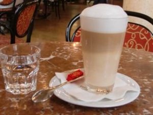 いつもコーヒーは敬遠気味、でもCafé Centralでは「ミルクコーヒー」をたのんでみました。上のほうのふわふわも、ふつうのミルクで、味もさっぱりして私でも飲めます。暖かいコーヒーがこんな大きなコップに入って、ミルクとコーヒーの混じってるところが見える☆