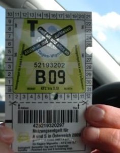 国境に着いたところで、オーストリア国内の高速道路を利用する料金を支払って(今回は「10日券」)前のところに貼っておきます。なんだかスキー場のリフト券を思い出してしまいました。