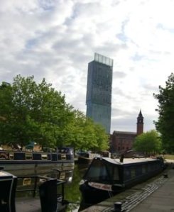 崩れそうだった建物を再開発してオフィスブロックやアパートメント、レストランなどができて、「古い建物に合うようにデザインされた」新しい建物も入り交じり、不思議な景色です。なかなか興味深い散歩でぐるりとDeansgateまでひとまわり。