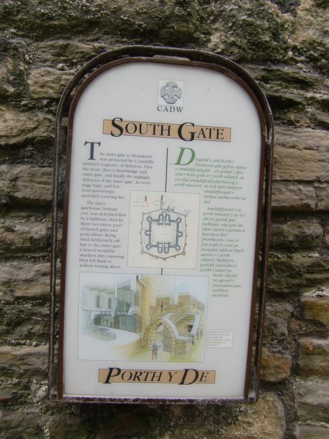 Sur l’autoroute l’anglais était en haut, mais à Beaumaris, près du parking public et sur le panneau touristique devant le château, ainsi que pour tous les commentaires historiques à l’intérieur du château, on voit la langue galloise en premier.