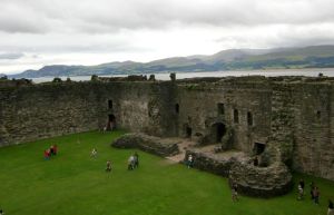 ボーマリスの城跡はすごい立派な遺跡!ユネスコの世界遺産に登録されているんだそうです。海沿いの沼沢地に建設したので、土台から全部を他から運んだ石で築き上げたもの。11世紀、エドワード1世が2回の戦闘でこの地方をほぼ制圧したものの、反乱が根強く、このボーマリスの城も最後の戦闘が終わった12年後の1295年に着工。最大2600の人足をつぎ込んで突貫工事を進めていたところにスコットランドで勃発した戦いに人手をとられたために工事が中断してしまい、予定された姿にはならないまま放置されてしまった。