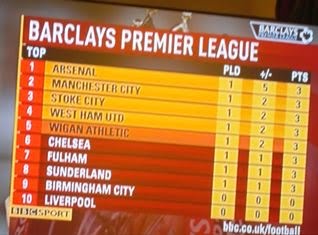 ちなみに、まだシーズン始まったばかりだから(表にPLD 1とあるとおり、まだ試合1つだからね なにしろ )、Man Cityが上から2番目に位置している!この状態が続くといいんだけど・・・どうなるでしょう???