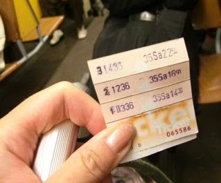 ・・・昔話はともかく、ウイーンの電車も一人ではなかなか乗れなかったでしょうが、今回はさとこ大先輩といっしょだったので、ずんずん問題なく乗りこなして、あっちへ行ったりこっちへ行ったり。便利!早い!チケットも、パリの地下鉄+バス共通のcarnet(回数券)とは少し違って、5枚つづりの縦長で、1回ごとに折り曲げて、機械にさしこんで「がっちゃんこ」として持っていればよいと。そういうことになっているのだそうです。使い終わったところを切り取ったりしないで、次に乗るときは、また次の新しいところを折り曲げて、「がっちゃんこ」。なーるほどー!!さすがウイーン、アナログなチケットで不思議と納得してしまいました。次に行ったら、うまくひとりで乗れるでしょうか??ちょっと、どきどき。