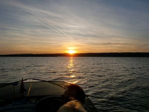 夕暮れ時の湖の船散歩、船上でのピクニック。。。とってもステキですね!