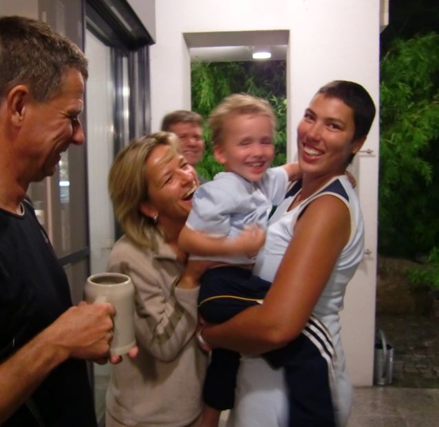 Une des personnes clé dans notre cercle d’amis, Jim (4ans!), commence aujourd’hui à aller au jardin d’enfants à Breitenbrunn. Il est en fait allemand comme ses parents Georg et Katrin, mais ils viennent de s’installer ici. Georg et Bernie travaillent ensemble depuis une dizaine d’ années et c’est grâce à Georg qu’on a rencontré tous les autres amis autrichiens. Katrin a eu un gros pépin – une maladie difficile – qu’elle est en train de bien surmonter…. alors ça nous fait d’autant plus plaisir de voir leur famille évoluer dans un sens vraiment positif, Jim grandir à toute vitesse… C’est si attendrissant de le voir encore moitié ‘bébé’ avec sa maman, le soir où les amis étaient en train de boire, trinquer et bavarder….