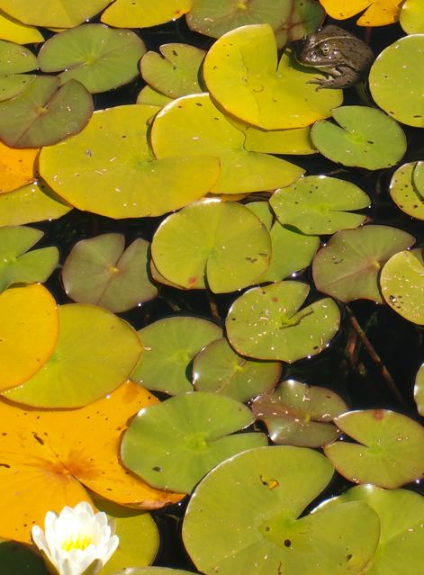Sachanの言葉って天空自在に降ってくるのかなあ.すっごくしっくり来る独特の表現が多くて感心感嘆感無量です。すっごく全身を伸ばして飛び込むカエルさんを想像しちゃった.睡蓮の葉っぱも黄色いし本当に終わりの季節なのねえ.蓮根は取れるのかな?