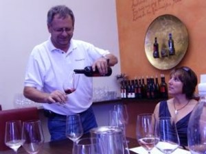 C’est le village voisin qui se trouve à 10 minutes. On a commencé – vers 17h30 – à essayer un ou deux ou trois vins rouges – très agréables – ensuite quelques vins blancs…super frais, vraiment sympas…. et ensuite quelques autres vins rouges encore… au total nous aurons bu une bonne bouteille chacuns!!