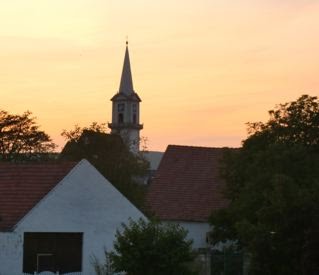 みんな楽しく(このころは既にかなりご機嫌状態)記念撮影とかをしているあいだに、村の教会の向こうの空が夕焼け色になって・・・