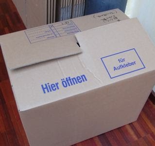 En tout cas, ces cartons allemands sont véritablement étonnants, je suis super impressionnée de voir ce système de ‘fermeture’ – à la fois super facile, solide, propre et économique, car vous n’avez pas besoin de coller avec des bandes adhésives ou quoi que ce soit, donc réutilisable. Je n’avais jamais vu de ça dans ma vie, mais il me semble qu’en Allemagne c’est quelque chose de tout à fait standard…