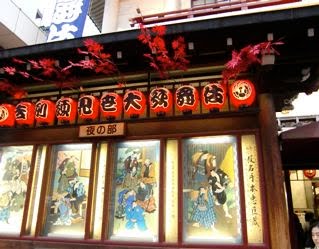 もみじの葉っぱのお飾りも、お土産コーナーの「人形焼き」の甘い匂い、来年の干支の虎の張り子や 歌舞伎俳優ブロマイドコーナーも全部なつかしい☆
