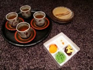 素敵な午後のひととき、「お持たせ」の和菓子でお茶をいただきました。