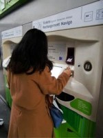 機械も各駅に設置され、派手な緑色で、わりと薄暗いパリの地下鉄駅の中でもよく目立つ。