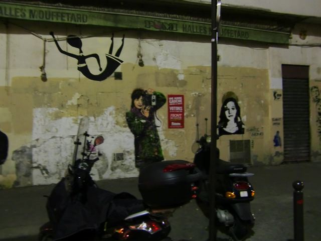 Annieの新しいアパルトマンから、ギリシャ料理を食べに行く途中、graffitisのいっぱいあるMouffetardの角。