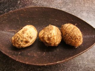 里芋は日本の里芋に形が似ているが、味は少し違って、かなり粉っぽい。
