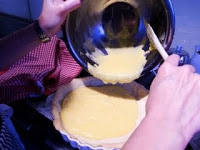 3)雑誌のレシピーのレモンクリーム >>> レモン汁+バター+砂糖+レモンの皮のすりおろし をハンドミキサーで1分間混ぜたのを、直接パイのなかに流し込む