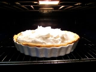 3) メレンゲをつくって レモンクリームの上からさらにのせて、焼き色をつけるところ。