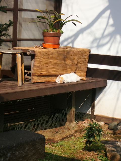午後は、近くにお住まいのFrançoiseさんのおうちへおじゃましました。ここのお庭は独特の侘びの風情。猫がたくさん遊びにきて、お気に入りの場所でヒナタボッコしたり昼寝したり。のんびりムードの午後でした。