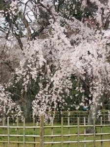 荷物を置いたあと、今度は京都御所の御苑へ。しだれ桜が素敵に咲きそろって、お花見のはじまりです。今回の滞在中にほんとにお花見ができるのか、あやぶまれましたが、これで念願がかなって大満足。バスに乗って南禅寺方面へ。石川五右衛門で有名な三門に登って、まわりに広がる景色を眺め庭園を散歩。さらに夕方は、錦市場へ。