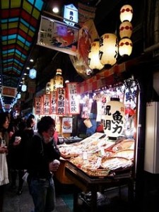 les cerisiers en fleurs dans le jardin du Palais Impérial ; Le grand temple Nan-Zen-Ji avec ses beaux jardins et la vue magnifique du haut de la grande Porte; Le marché Nishiki, le long de la petite ruelle avec plein de magasins qui vendent poissons, légumes, etc etc…