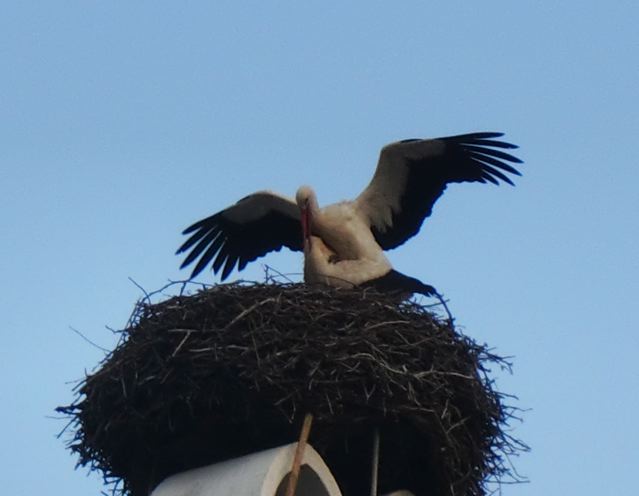 まだ空っぽの巣もあるけど、早くも到着してちゃーんとスイートホームを決定>ラブラブ状態のカップルが、あっちにもこっちにも。うわーお♡ 素晴らしい、この愛いっぱいの眺め♡♡♡毎年帰ってきてくれるコウノトリに地元の人たちがエキサイトする気持ちが、すごくよくわかるような気がしました。