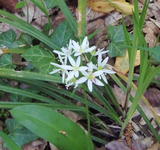 3月のはじめの雛祭りのころ、春のはじめての花を見た林。もうすっかり初夏の景色に変わって新緑がまぶしく、鳥の歌声も力強く感じられます。そこらにいっぱい咲いてる可愛い白い花。なんだかニンニクみたいな香り。