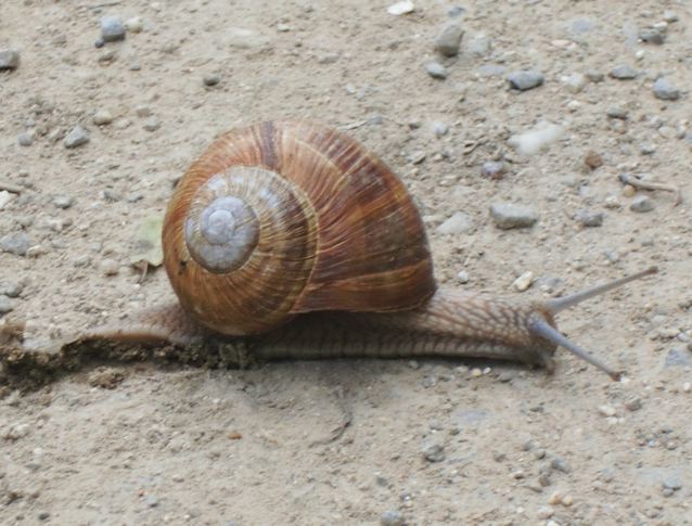 汗がひいたらまた早足で歩いていると、こんどは足下にカタツムリが!