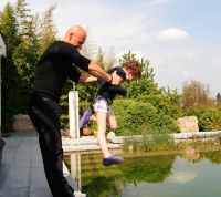 カトリンとゲオルグとジムくんの家族、わたしたちとトーマスとジェニーも加わって総勢8名半。飲んだり食べたりプールのまわりでうろちょろ 楽しい日曜のひとときでした。