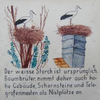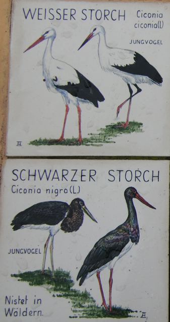 WEISSER STORCH / SCHWARZER STORCH : Je commence par les éléments les plus évidents. Les blanches et les noires, ok. Et pour les noires, Nistete in Wäldern : ils se nichent dans les bois.