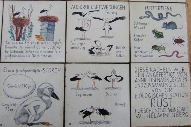 Ce sont des tuiles qui se trouvent sur une espèce de tableau d’info au coin de la rue à Rust, en face des maisons au dessus desquelles les vraies cigognes sont installées.
