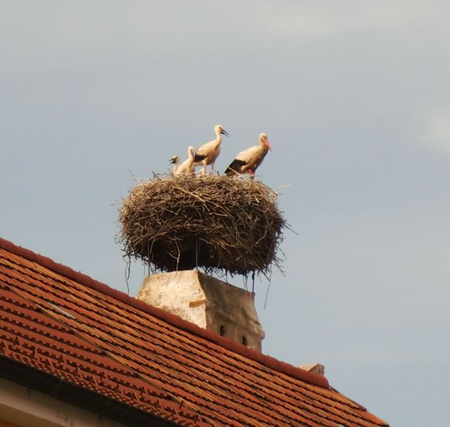 Après la discussion, je suis allée dire bonjour à mes chères amies-cigognes. Leurs bébés ne sont plus tellement ‘bébés’… ils ont l’air d’être un peu plus en avance par rapport à leurs cousins de (la pharmacie de) Neusiedl. (Pour voir les cousins d’hier soir, cliquez ici!)
