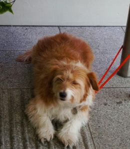 Un chien attendait très patiemment à l’entrée d’un grand magasin.