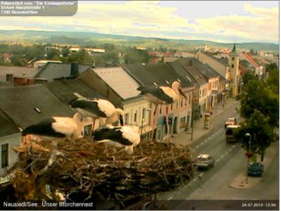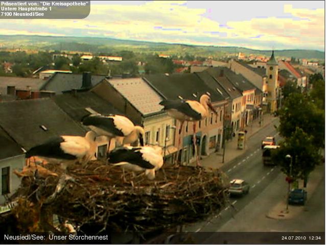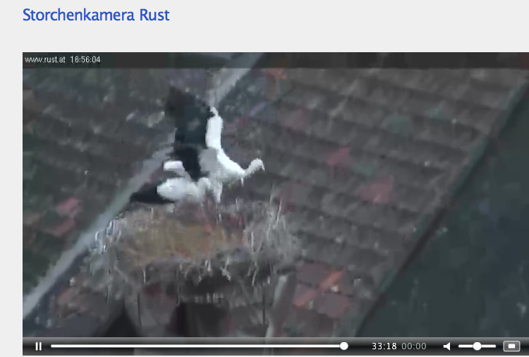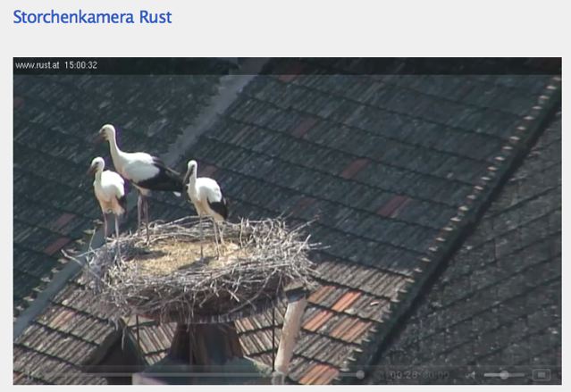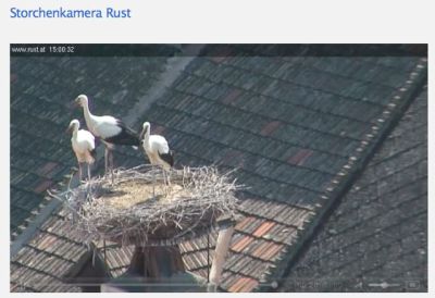 J’ai aussi récemment trouvé un autre web-cam à Rust: celui-ci vous les montre en train de bouger en image vidéo, à la différence de celui de la pharmacie de Neusiedl qui les photographie toutes les 2 minutes.