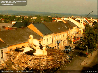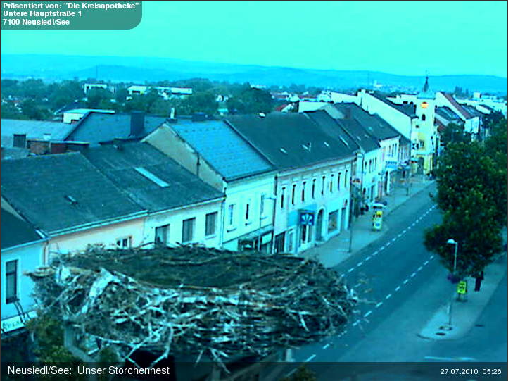 Hier après-midi (vers 1h du matin à Tokyo!), junjun avait remarqué que le nid à Neusiedl était vide!!! …Effectivement elles étaient toutes parties quelque part, mais quelques minutes plus tard, elles étaient déjà là, tranquilles, comme d’habitude.