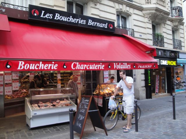 | Nous sommes passées devant la boucherie, mais rien à acheter là… 肉屋さんには寄りませんでしたけど。 |