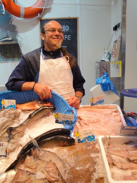 野菜や果物のあと、魚屋さんへ。切り身もいろんな種類があるし(これは買って来てオリーブ油とかでシンプルにオーブン料理)切り身じゃない魚は頼めば兄ちゃんがちゃんとウロコをとってお腹も出して、きれいにしてくれます。