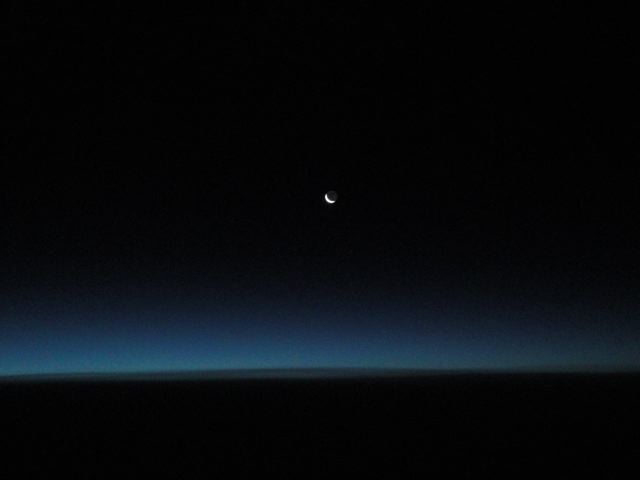 もうすぐ東の方角から太陽が顔を出すぞ。「じっとよく見てないと、出るときは一気に出るんだ」とフリッツが教えてくれました。月は三日月 だんだんと高いところへ昇っていきます。