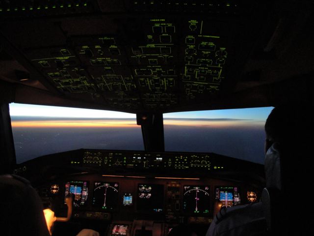 Le vol Wien-Narita que je viens de faire est en effet le plus extraordinaire de tous les vols que j’aie jamais pris entre Europe / Japon. Absolument sublime!! C’est que notre ami Fritz pilotait la machine et il m’a gentimment invitée à venir les regarder en train de travailler, ainsi j’ai pu contempler le ciel d’un angle totalement différent. Quel spectacle grandiose!!!