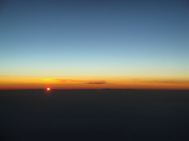 Enfin le soleil est arrivé sur l’horizon. Fritz m’explique que même pour lui, c’est un moment très spécial, même s’il voit le soleil monter à chaque fois qu’il fait un vol comme celui-ci.