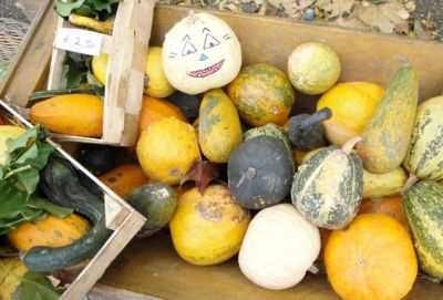 朝いち イルミッツの八百屋さんへ野菜を買いに行きました。店のまえに野菜が並べてあって、「お代はポストに入れてください」方式。カボチャマンが心なしか寒そう・・・