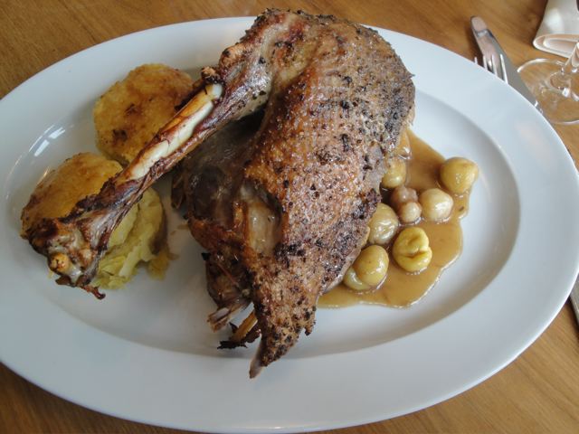 Nous sommes allés déjeuner chez Pauli Stuben à Purbach et j’ai eu le courage d’attaquer ce plat traditionnel pour la première fois, dans la version ‘Gansl auf Kästensafterl aus der Genuss Region mit Erdäpfelgratin’ ( Oie rôtie à la sauce aux chataignes avec de la pommes de terre dauphinoise) …. Extra!!!