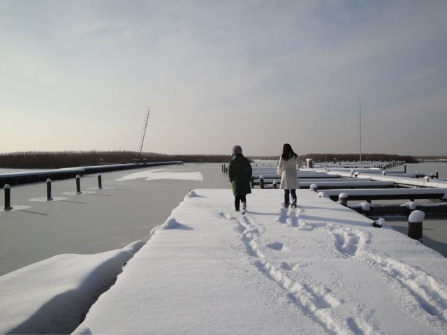 | きゃー寒いよ〜 湖をいちばん最初に見物。やっぱり凍っていました Ohhh là là… quel froid!!! On commence notre découverte par le lac … qui est toujours gelé (bien sûr..) |