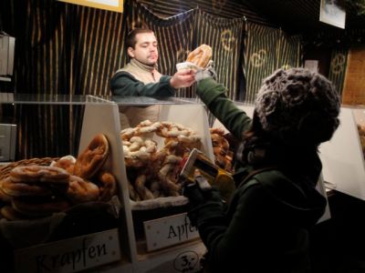 ・・・お菓子やドーナツやソーセージなど屋台の食べ物を試したり、暖かい飲み物(ホットチョコレート、グルーワイン)を飲んだり。手作りの雰囲気溢れるお店がいっぱい☆