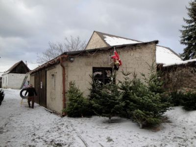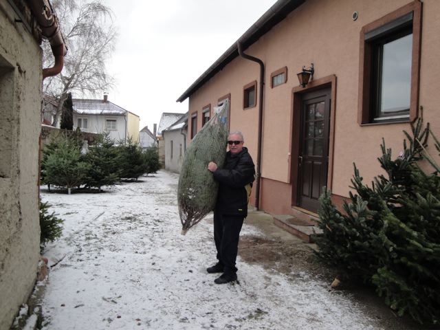 なにしろ車の窓から木のてっぺんが飛び出した状態で(つまり窓を開けっ放しで)走って帰って来るんですからね!あまり遠くの店へ買いに行くってことは現実的に無理なわけね(凍えちゃうもんね)。そこでブライテンブルンの郵便局のすぐそばの家の人がやってる「もみの木売り場」のお世話になることに。去年と同じです。ここなら、ひとつ角をまがって真っ直ぐ行って右に曲がれば、すぐ家に着くからね。