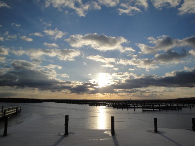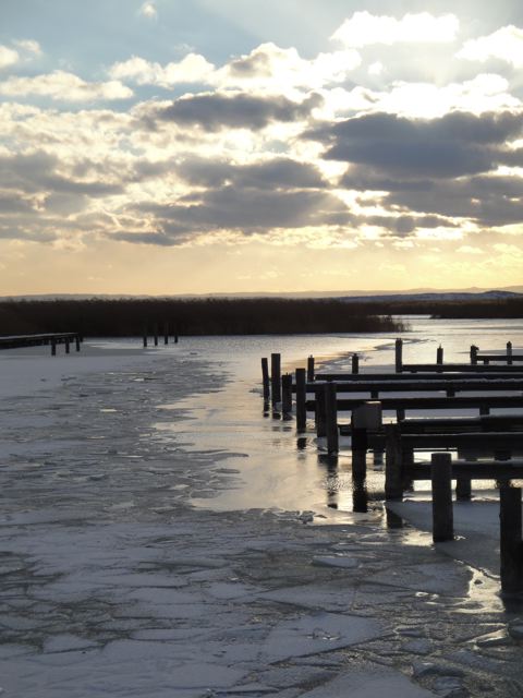 湖畔はもう日暮れの時間、犬の散歩に来た人ふたりとすれ違いましたが、あとは人っコひとりいない静寂の世界です。今日は風が強くて、刺すような寒さ。あまり長い時間は歩いていられませんでしたが・・・広い湖と空の色の変わっていく様子を眺めるていると、身体全体が洗われるよう。顔つきまで変わってしまいそう(寒さで引きつってたとか?いや、そうじゃなくて、ね?)新鮮な空気をいっぱい吸って、急いで車のほうへ戻りました。