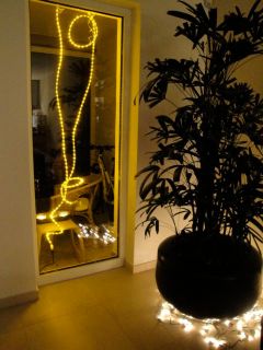 うっふっふ なんだかいっぺんにクリスマスらしくなった☆ あの黄色い電気のきらきらは、ドイツに住んでたときはベランダのところに四角くつけてて、なんだかパッとしなかったんだけど、今回は天井からつるしてみた。つるしただけで芸がありませんが。羽とかつけたら天使に見えるかしらん?丸く輪っかにしようかしらん?まだ考え中・・・