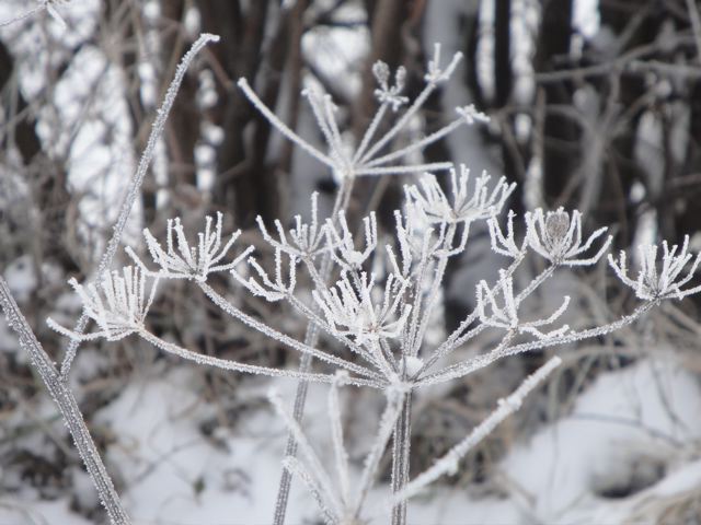 いろんな形の植物が凍っている様子は芸術作品のようですね。