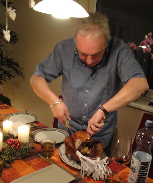 夕方からカトリンとゲオルグがラウラちゃんとジムくんの家族全員で来てくれたので、6人いっしょの賑やかな食卓 でっかい焼き鳥七面鳥もポテト、人参、芽キャベツのつけあわせも全部「ぺろり」と平らげてしまいました。