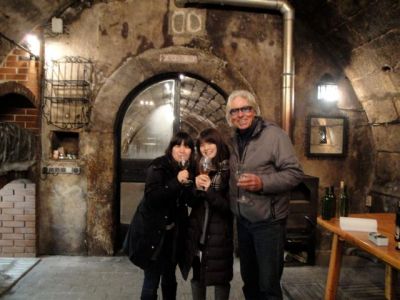 Super surprise pour les deux filles, avec une mini dégustation de vin doux dans la fameuse cave historique de Ossie-san. Il a cru qu’elles avaient 17 ans!!