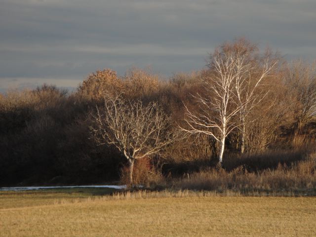 あっちに見えるのは白樺?輝いて見えました。日陰は雪が残ってますね。